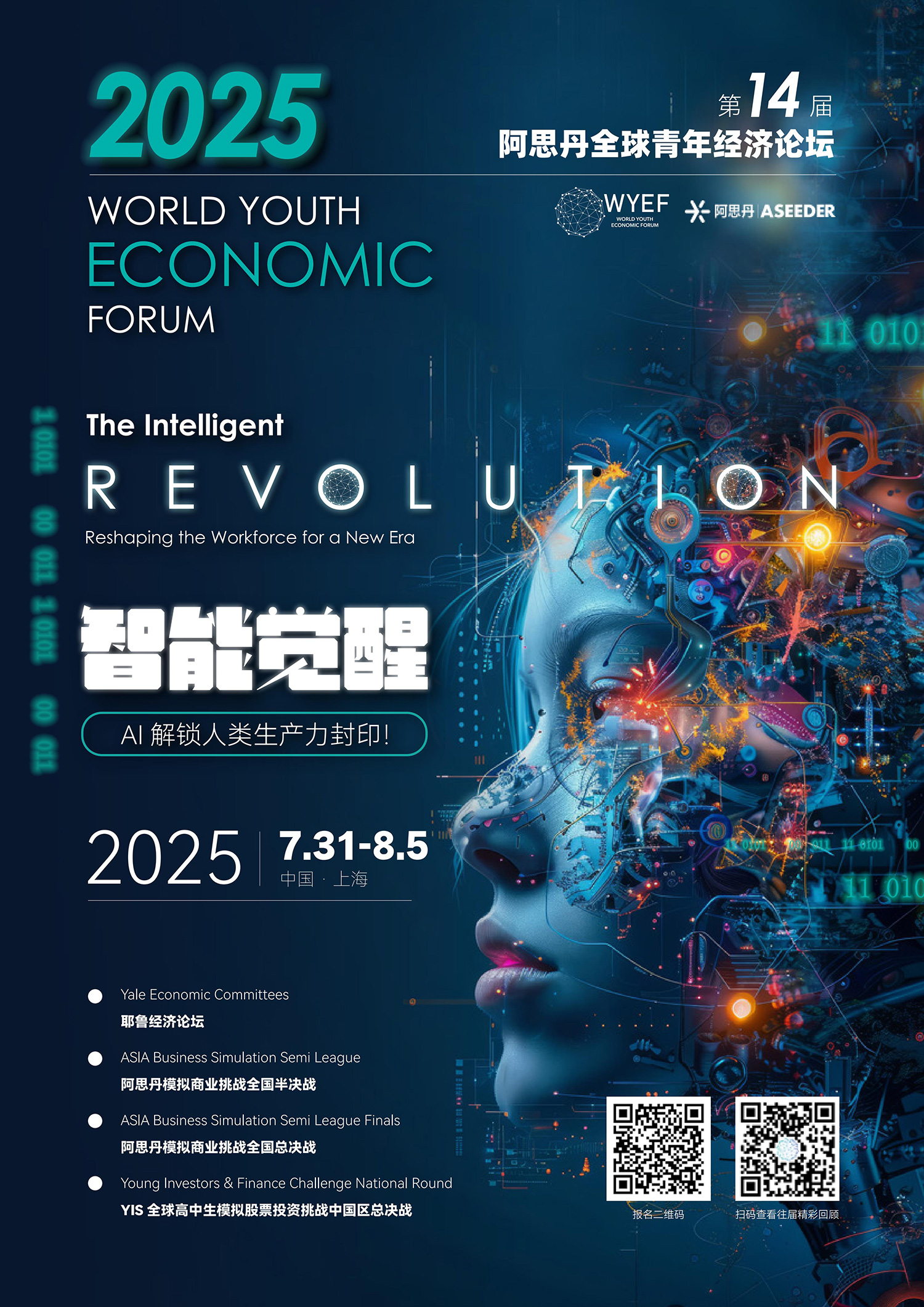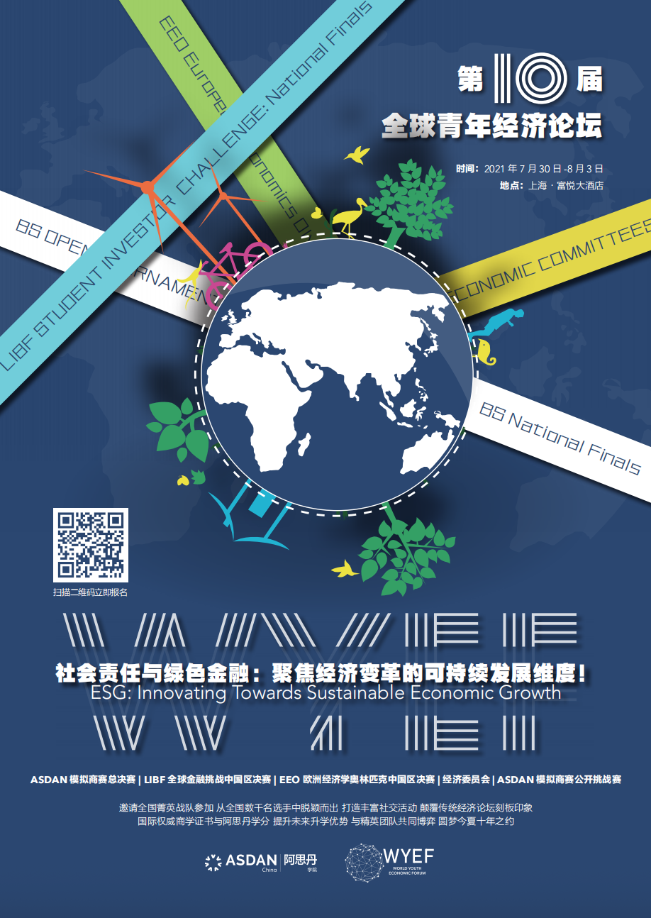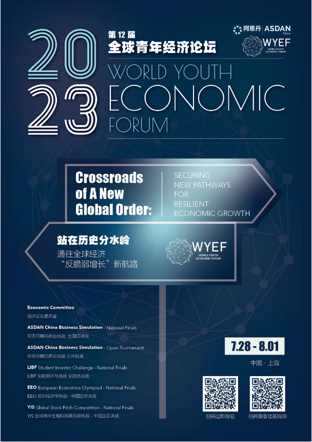 WYEF论坛每年围绕一个世界前沿的经济议题,邀请全球优秀中学生及国际学术机构、世界各校代表和商界精英研讨辩论,被誉为“中学生的达沃斯世界经济论坛”。论坛将围绕每年主题设置阿思丹模拟商战全球半决战、阿思丹模拟商战全球总决战、耶鲁经济论坛、YIS 全球高中生模拟股票投资挑战全国挑战,邀请经济学家、商界精英分享经济领域前沿话题和未来职业发展。