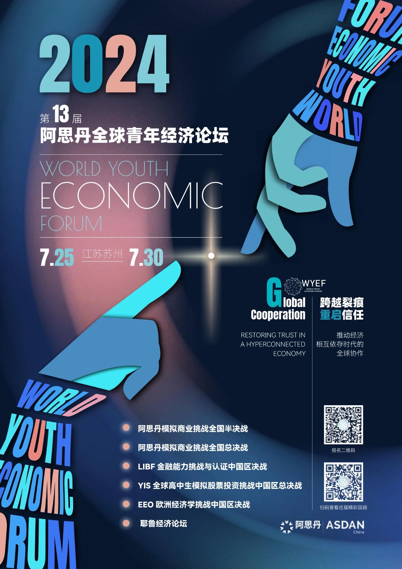 自 2012 年以来,WYEF 迄今已成功举办过十四届,共有来自 21 个国家累计超过 10000 名中学生参加。第十五届阿思丹全球青年经济论坛将于 2026年 7 月 29日至 8 月 3日在中国上海举行,预计超过 2000 名代表参会。
